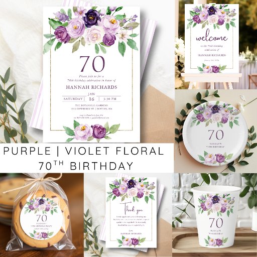 Purple | Violet Floral 70th BirthdayDesignt von Natalie