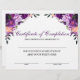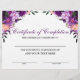 Beruflich, anpassbar, Abschlusszeugnis. Ideal für Kurse, Schulungen, Geschäftskurse und vieles mehr. Personalisieren Sie Ihren eigenen Text. Elegante Wasserfarbe Lila Ultra Violet Blüte mit violetten Blumen, Pfannenbäumen und botanischer Vegetation.