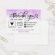 Vielen Dank für Ihre Einkauf Paket einfügen in einem niedlichen Design mit einem hübschen Skript mit Herzen verziert gegen eine Aquarellwäsche in lila. Personalisieren Sie mit Ihrem Firmenlogo und Ihren Social Media Accounts. Sie können auch einen Rabattcode für den nächsten Kauf Ihrer Kunden aufschreiben.
