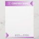 Lila und weißer, moderner beruflicher Briefkopf mit Vorlagenfeldern für Name, Firmenname/Firmenname, Logo (Foto oder andere Grafik) und Kontaktinformationen. Sie können die Textgröße, den Schriftart und die Farbe nach Ihren persönlichen Vorlieben anpassen.