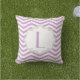 Lila, Zickzack Zick-Zack-Muster werfen/werfen Akzent dekoratives Kissen mit Monogramm in einem grauen Rahmen.