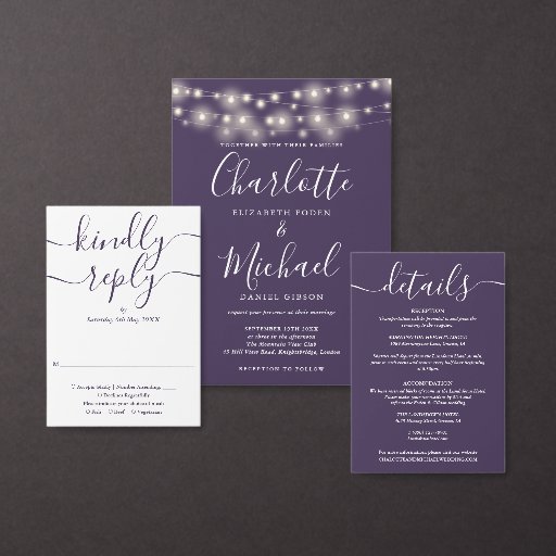 Purple String Lights Signature Script Wedding Designt von Thisisnotme Designs