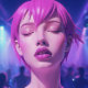 Lilac Dream Whisper - Ein Lila Portrait von Serene und Ethereal. Ein ruhiges und ätherisches nah-up-Porträt eines weiblichen Gesichts in lila-weißen Farbtönen. Die sanften Stilisierten Pinselstriche und die abstrakten Elemente verleihen diesem Kunstwerk eine traumhafte Qualität und laden den Betrachter dazu ein, sich in die traumhafte Ruhe und Introspektion des Themas zu verlieren.