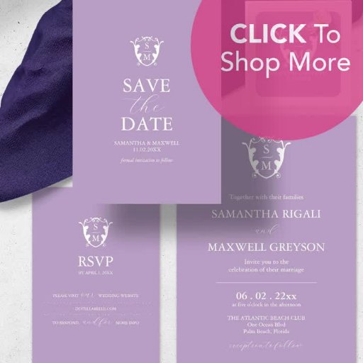 Rett auf Papier und Geld mit dieser Mono Budget Hochzeitseinladung mit QR-Code. Dieses schlichte und dennoch elegante Design bietet neben der kalligraphischen Typografie einen klassischen Sans-Schriftart in Weiß über einen lila lila Hintergrund. Ein elegantes Wappen umrahmt die Initialen von Braut und Bräutigam. Die Karte kehrt zu einer soliden Farbe zurück, die mit Ihrem Hochzeitsstichcode übereinstimmt und Platz für weitere Details. Alle Farben sind für Ihre perfekte Farbanpassung anpassbar. Für nachhaltigere Hochzeitseinladungen besuchen Sie bitte www.zazzle.com/dotellabelle