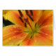 Notecard mit orangefarbenen Lilienglänzen mit Regentropfen. Leere dich für deine persönliche Nachricht.
