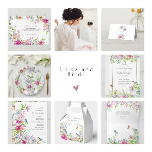 Wedding. Lilies and Birds WatercolorDesignt von Tatiana Mitrushova