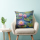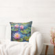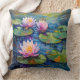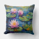 Dieses Kissen ist mit rosa-weißen Lilien in einem Teich dekoriert.