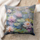 Dieses Kissen ist mit rosa, gelben und weißen Lilien in einem Teich dekoriert.
