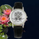 Uhr, Klassische Damenuhr mit schwarzen Lederarmband