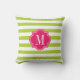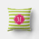 Limone grüne Streifen mit heißes Rosa-Monogramm Kissen