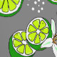 Stilvolle fruchtige Schale und Tapete mit einem farbenfrohen Muster von Limonen grünen Zitrusscheiben und hübschen weißen Blume auf einem schiefergrauen Hintergrund. Es eignet sich hervorragend, um in der Küche oder im Bar eine Funktionswand zu erstellen
