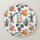 Line Art zeichnend Katzen und Blume Rundes Kissen