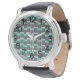 Diese Armbanduhr hat ein modernes Design, das Mitte des Jahrhunderts aus fünf schwarzen Linien und zwei türkisfarbenen Rechtecken besteht, die sich im Design wiederholen.