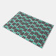 Dieses Türmchen hat ein modernes Design Mitte des Jahrhunderts, das aus fünf schwarzen Linien und zwei türkisfarbenen Rechtecken besteht, die sich im Design wiederholen.