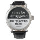 Ich bin vielleicht links-händig, aber ich habe immer recht! - Witziges und humorvolles Sprichwort mit einer Einstellung über Linke.
