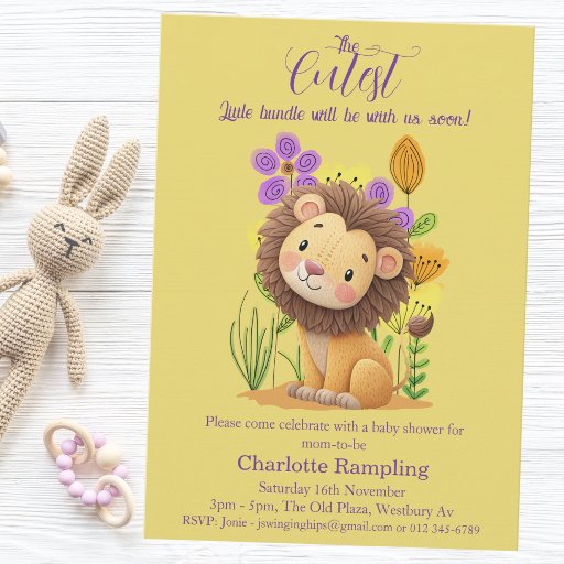 Die Einladung zur Babydusche zeigt einen bezaubernden Löwen, der eifrig auf seine Mama wartet und einen süßen und spielerischen Weg bietet, um Liebende einzuladen, den bevorstehenden besonderen Tag der Mutter zu feiern.