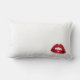 Ein Wurfskissen mit einem Bild des Schmierens des Lippenstifts auf der Front und der Lippen auf der Rückseite.