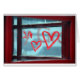 Lippenstift-Herz auf einer gedämpften Fensterscheibe.