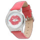 Uhr, Kinderuhr aus Edelstahl mit rosa Lederarmband