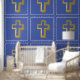 Lit Golden Cross Christlich Iris Blue Square Tapete