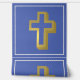 Das Kunstwerk ist mit einem hellen, goldenen Christlichen Kreuz in einem minimalistisch gerahmten Design auf iris-blauem Hintergrund gestaltet. Die Hintergrundfarbe kann angepasst werden, wenn Sie sie bearbeiten möchten, um sie besser an Ihre bevorzugte Farbpalette anzupassen. Für spezielle Anfragen oder Fragen wenden Sie sich bitte an den Künstler unter wafadahdalcreates@gmail.com. © Wafa Y. Dahdal - Alle Rechte vorbehalten. WD Art