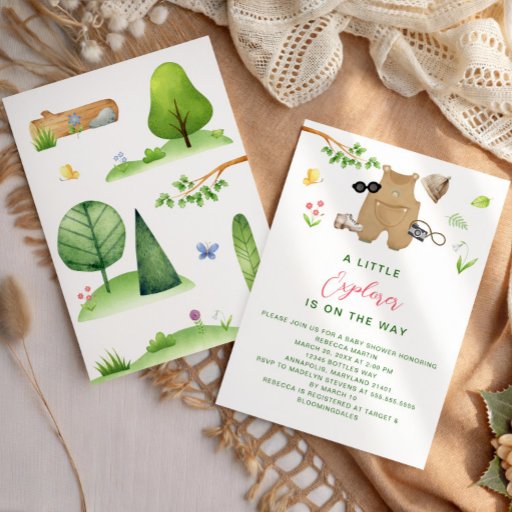Little Explorer Woodland Forest Hiking Baby Shower Einladung