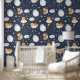 Little Fox Niedlich Moon Stars Kindermuster Tapete