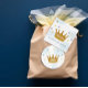 A little prince is on the way! Boy baby shower with gold crown and silver and gold stars with dreamy blue watercolor background