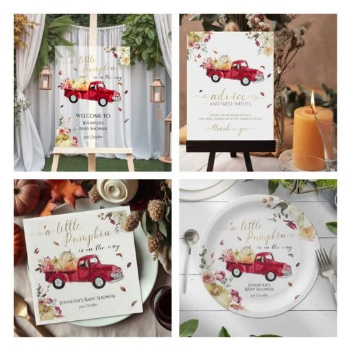 Little Pumpkin Vintage Fall Red Truck Baby ShowerDesignt von CaMi Designs