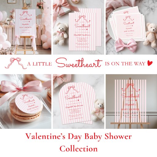 Celebrate a Valentine’s baby shower with these sweet Little Sweetheart labels. Designed for a baby girl, it features soft pink stripes and a hand-drawn red bow. These cute, girly, and modern stickers have a subtle coquette feel while keeping the design simple, elegant, and easy to personalize - making them the perfect party supplies for a love-filled celebration welcoming a baby girl.