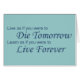 Leben Sie, als würden Sie morgen die, Lernen Sie, als würden Sie für immer leben. Die Botschaft ist klar, leben Sie voll und ganz.