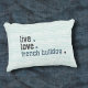 Dieses Kissen mit Akzent, das mit einem französischen Bulldogmotiv geschmückt ist, zeigt einen marinebrünen, gestreiften Hintergrund und den berühmten Satz "Live. Liebe. Französischer Bulldog." Es ist eine ideale Wahl für Hundefreunde, besonders für die Liebhaber von Bulldogs. Das charmante und geradlinige Design des Kissens macht es zu einer angenehmen und modischen Ergänzung zu jedem Raum. Es wird sicherlich für seinen schicken und dennoch unkomplizierten Stil als Raumakzent gelobt. Außerdem gibt es eine Möglichkeit, die Rasse anzupassen.