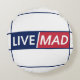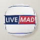 LIVE MAD – Bold Motivational Round Pillow (White) Rundes Kissen