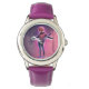 Uhr, Kinderuhr aus Edelstahluhr mit lila Lederarmband