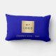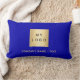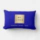 Ein trendiger königsblauer Hintergrund. Personalisieren und fügen Sie Ihr Unternehmen, Firmenlogo und einen Text. Goldene Buchstaben. Wenn Sie das Kissen ohne Text gewollt haben, löschen Sie mit Ihrem Backspace-Schlüssel.
