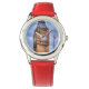 Kinderuhr aus Edelstahl mit rotem Lederarmband