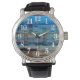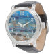 Uhr, Vintage Männeruhr mit schwarzem Lederarmband