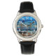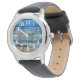 Uhr, Vintage Männeruhr mit schwarzem Lederarmband