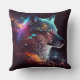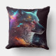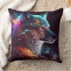 Ein wunderschönes Einzelwolf-Portrait in Blau, Lila, Gelb und Grautönen auf einem dramatischen schwarzen Hintergrund.