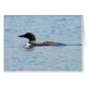 Bemerken Sie die Libelle gerade vor dem Schnabel des Loons.