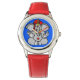 Kinderuhr aus Edelstahl mit rotem Lederarmband