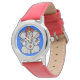Uhr, Kinderuhr aus Edelstahl mit rosa Lederarmband