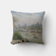 Der Louvre, der Frühling. Camille Pissarro. Frühlingslandschaft in warmen Farben. Ein breiter Fluss fließt durch die Stadt. Dampfschiffe fahren den Fluss entlang. Auf dem gegenüberliegenden Ufer gibt es große Gebäude. Es sind Wolken am Himmel. Reproduktion berühmter Kunstbilder im öffentlichen Bereich.