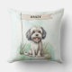 Add charm to your home with this Lowchen throw pillow featuring a watercolor design and customizable name flag. Perfect for breed enthusiasts.