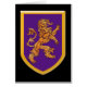 Linda Baysinger Pecks Gemälde eines goldenen, heraldischen, grassierenden Löwen, auf lila Schilduntergrund. Fügen Sie einfach Ihren eigenen Text hinzu, um diese Karte anzupassen. Für diejenigen, die Renaissance Feen und Geschichte genießen. Bild © Linda Baysinger Peck Alle Rechte vorbehalten