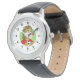 Löwe, der eine Fußballball-Cartoon-Uhr hält Armbanduhr