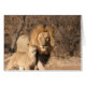 Löwe, der mit einem Löwejungen an seiner Seitenkarte herumstreicht.