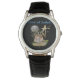 Uhr, Vintage Männeruhr mit schwarzem Lederarmband