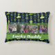 "Lucky Daddy" St. Patrick's Day Kissen. Personalisieren Sie dieses charmante Design für einen glücklichen Vater, um seine Kinder zu zeigen. Ideal für eine frische, moderne Ästhetik. Niedliche Kleeblätter, vierblättriges Kleeblatt, Blume und Blätter, die in Streifen angeordnet sind, bilden dieses reizvolle Muster. Schöne Frühlingsszenarien, Grüntöne und Gelbtöne mit gedämpfter Blues machen dies zu einem lebendigen, aber dennoch anspruchsvollen und auffälligen Design. Dieses Kissen kann mit sechs (6) Fotos - drei (3) vorne und drei (3) hinten individuell gestaltet werden. Personalisieren Sie den Text vorne und hinten. Wechseln Sie Papa zu Vater, Pop, Papa, Vater, Pater oder Ihrem Lieblingsnamen.