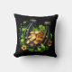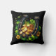 Ein Kopfkissen mit einem Motivbild zum St. Patrick's Day. Ein schwarz-goldenes Hufeisen sitzend in einem grünen Kleeblatt mit glänzenden Goldmünzen.
